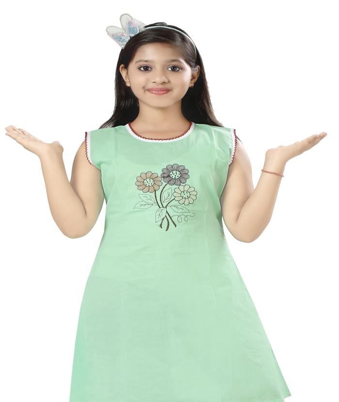 Upgrade your girl's wardrobe with this beautifully designed sleeveless cotton dress, featuring delicate floral embroidery for an elegant and playful look. Made from premium, breathable cotton, this dress ensures all-day comfort, making it ideal for casual outings, playdates, and special occasions.
