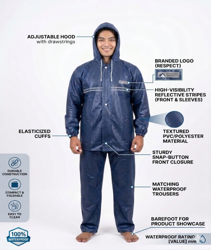 Stay Bone-Dry in the Heaviest Downpours! Introducing the Respect All-Weather Rain Suit by Sounik Fashion SDS Co., engineered for those who don’t let a little (or a lot) of rain stop them. Whether you are commuting on a bike, hiking through the trails, or working outdoors, this premium two-piece suit offers a 10,000mm waterproof rating to ensure total protection.